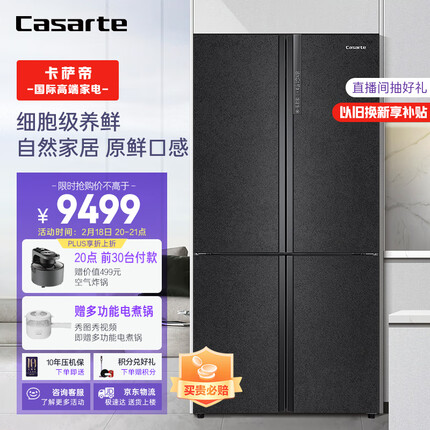 4、卡萨帝(Casarte)原石系列 475升 法式三门家用超薄冰箱 一级能效 风冷无霜变频 暮云黑 BCD-475WLCI369PA