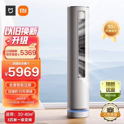 1、小米(MI)3匹 新一级能效 变频冷暖 智能自清洁 客厅圆柱空调立式柜机 KFR-72LW/N1A1 以旧换新